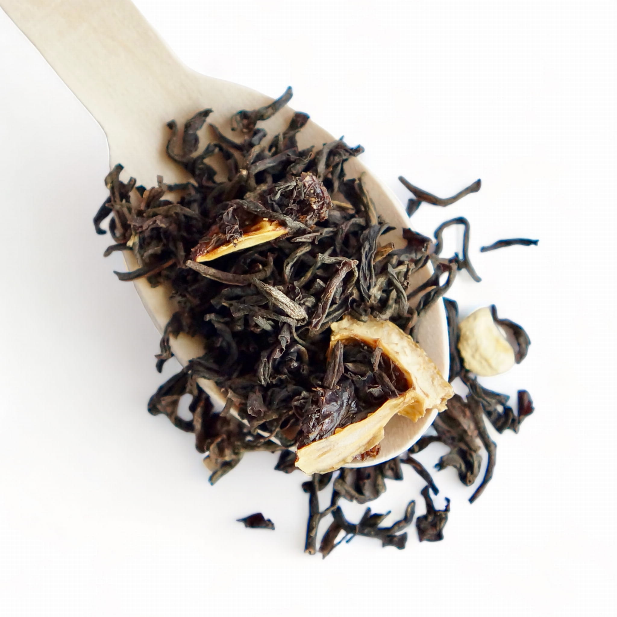 Składniki: herbata fermentowana, skórka cytryny, cząstki cytryny, olejek z owocu cytryny, granulat soku cytrynowego (sok cytrynowy, syrop glukozowy, skrobia modyfikowana, zagęstnik E401). Pochodzenie: UE.