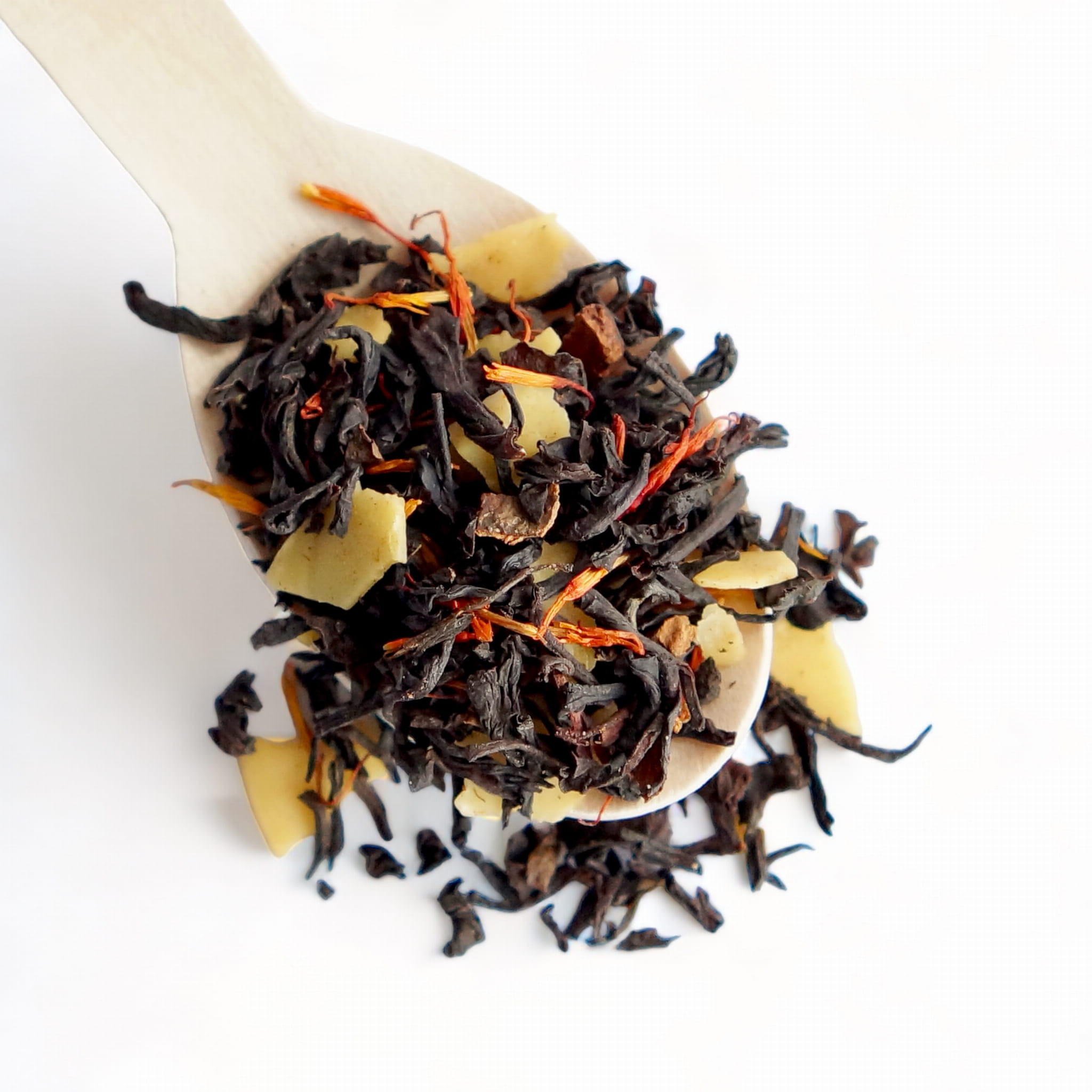 Składniki: herbata czarna (79%), płatki migdałów (10%), cynamon, aromat, płatki szafranu