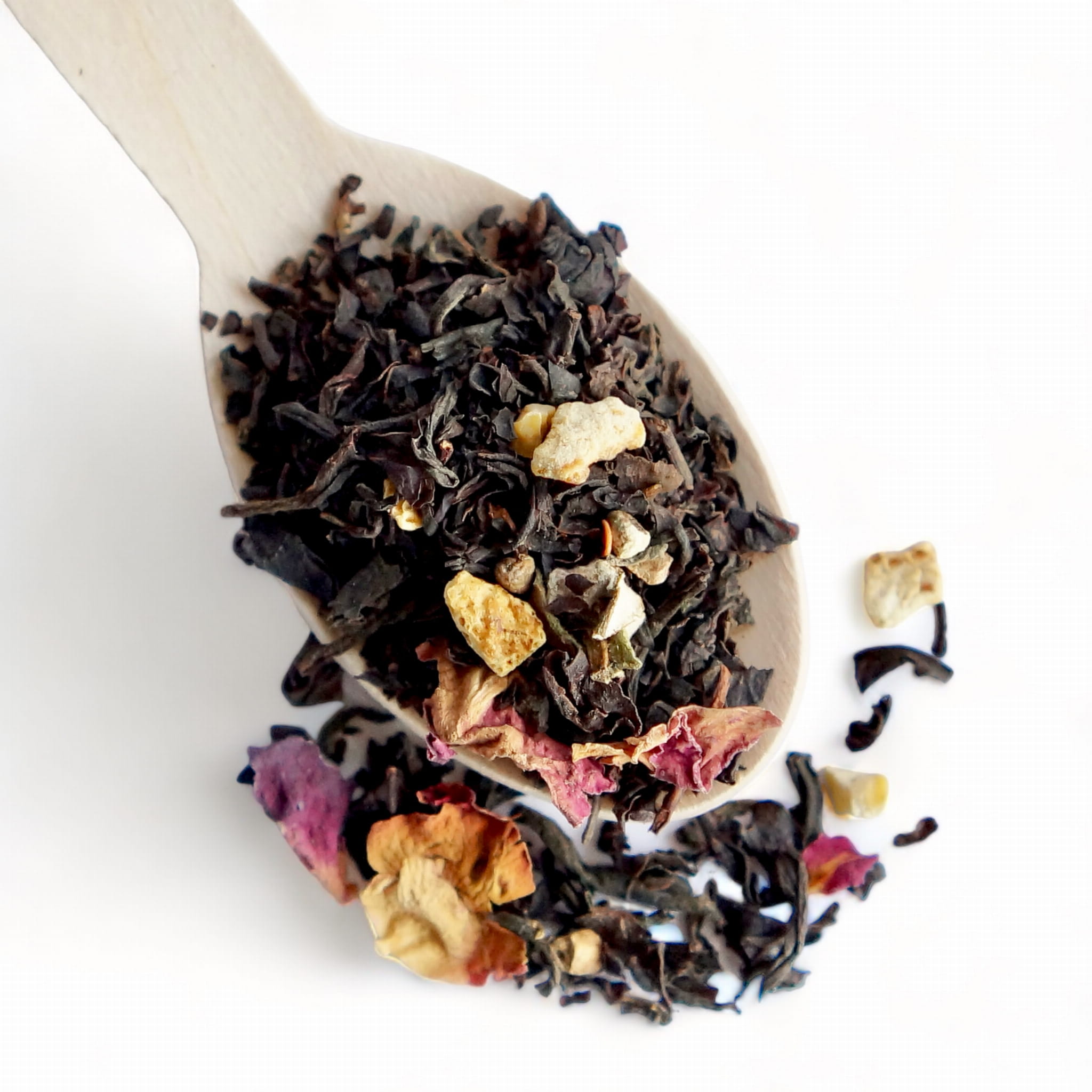 Składniki: czarna herbata (89%), skórki cytrusów, aromat, płatki róży, płatki migdałów, goździki, nasiona kardamonu, wanilia Bourbon ekstrakt; może zawierać śladowe ilości innych orzechów