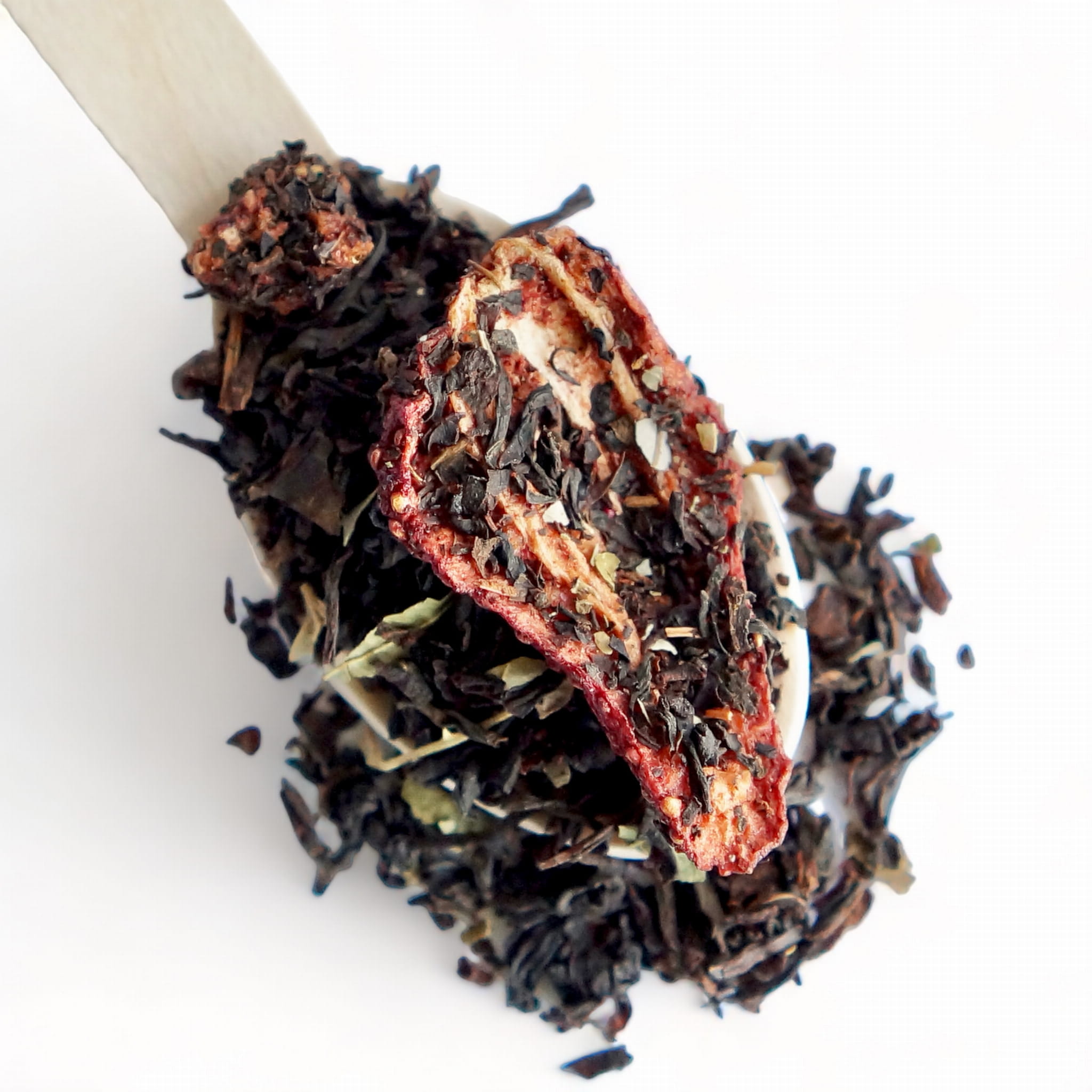 Składniki: herbata czarna (93%), aromat, truskawki (2,5%), liście jeżyn