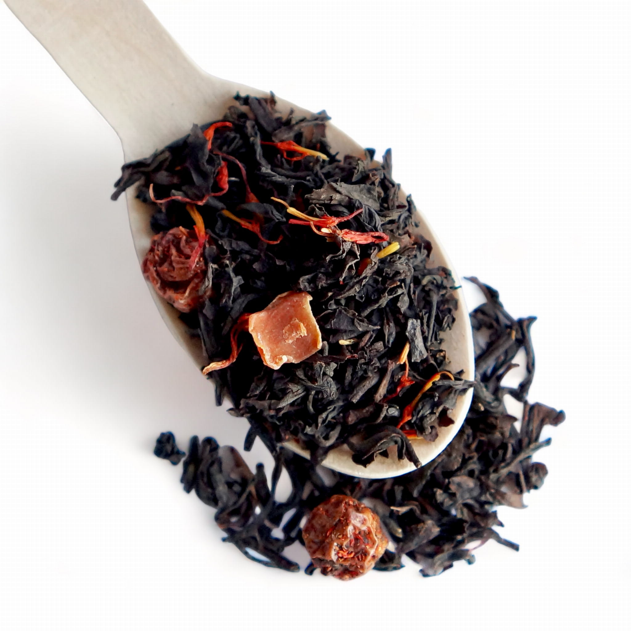 Składniki: czarna herbata, suszona czerwona porzeczka, suszona marchewka, oset, naturalny aromat.