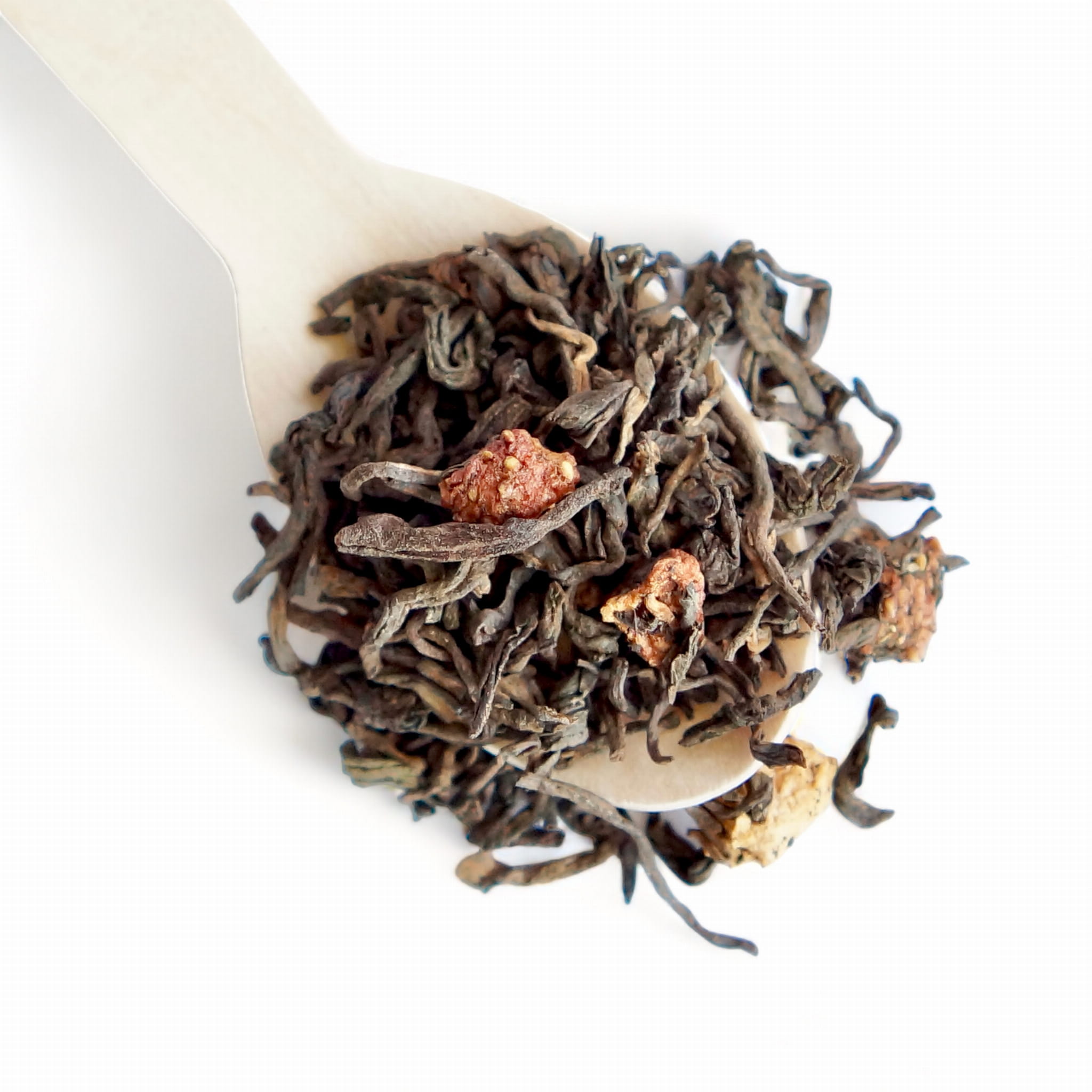 Składniki: herbata pu erh, kawałki suszonych truskawek, naturalny aromat.