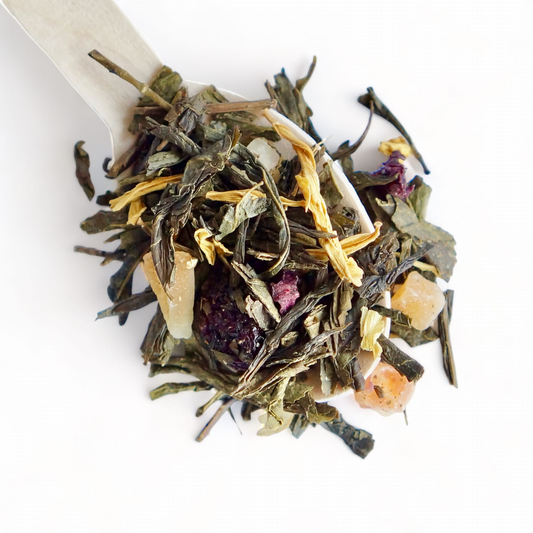 Składniki: herbata zielona sencha, mango, papaja, kwiat słonecznika, wiśnia, naturalny aromat.