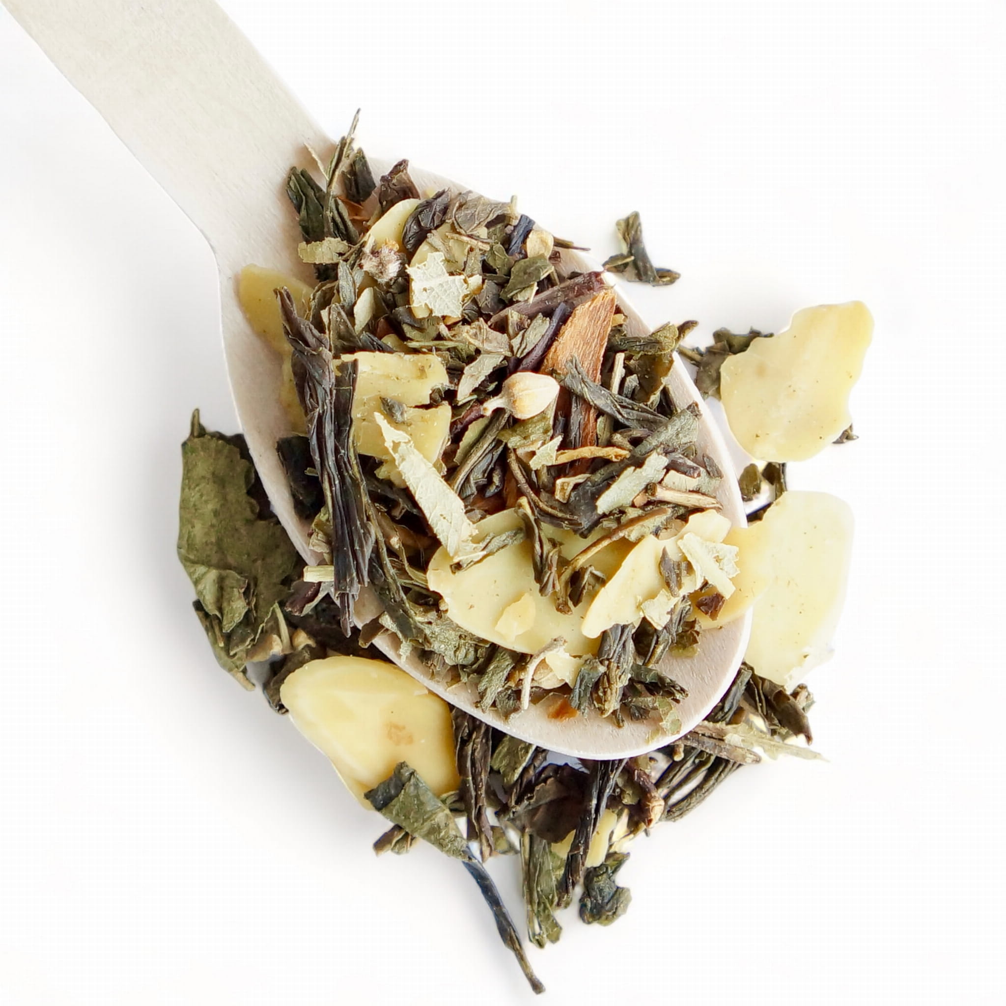 Składniki: herbata zielona (62%), płatki migdałów (17%), kwiaty lipy, aromat, cynamon