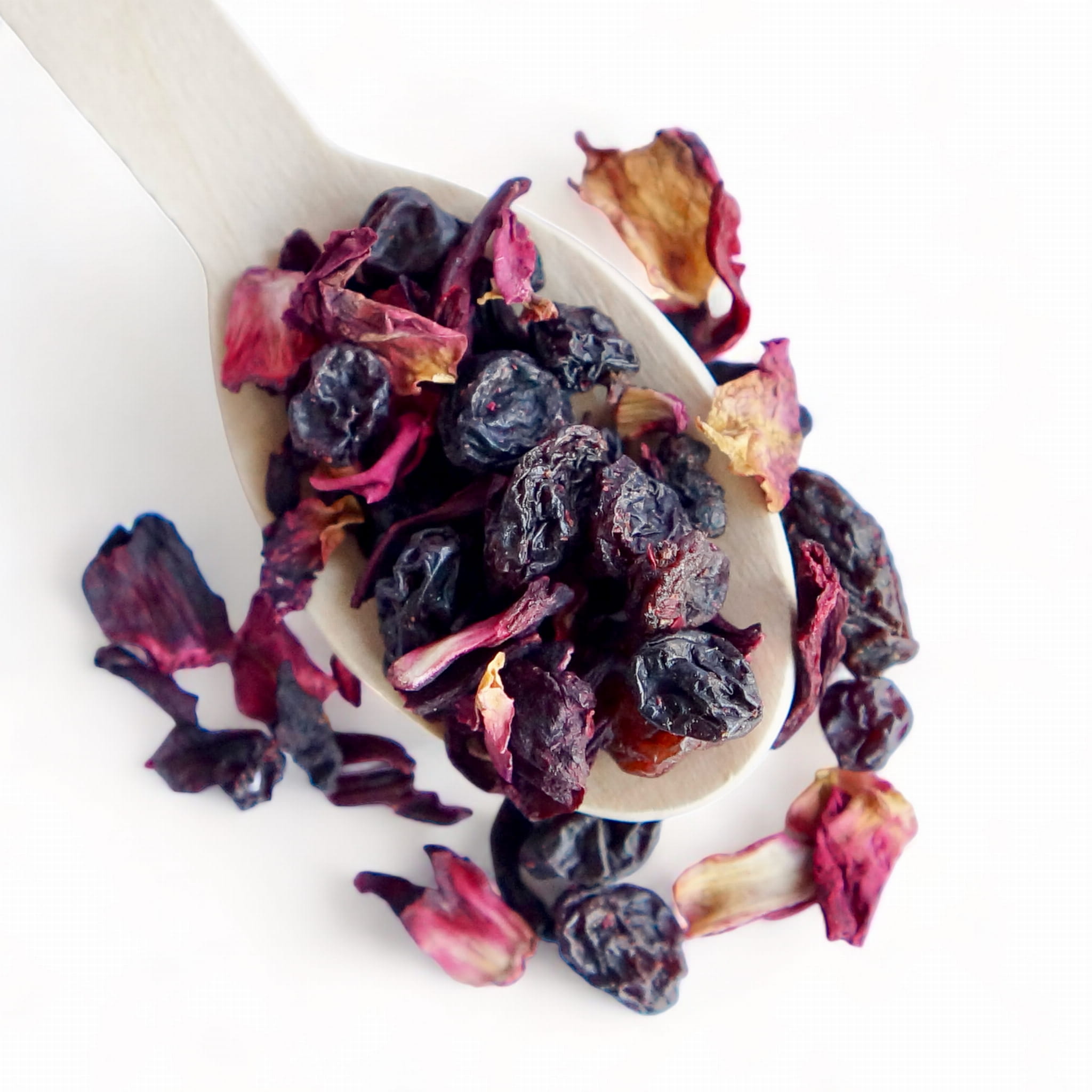 Składniki: hibiskus, suszone rodzynki, suszony owoc czarnego bzu, płatki róży, naturalny aromat.