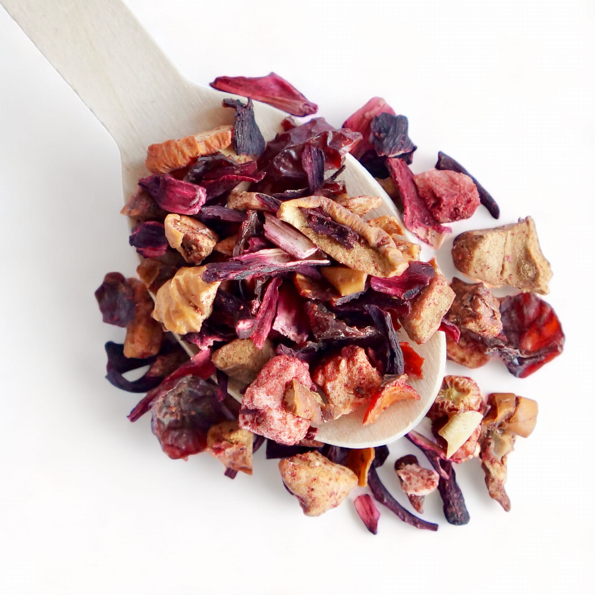 Składniki: hibiskus, kawałki jabłek, skórki dzikiej róży, truskawki (3%), aromat