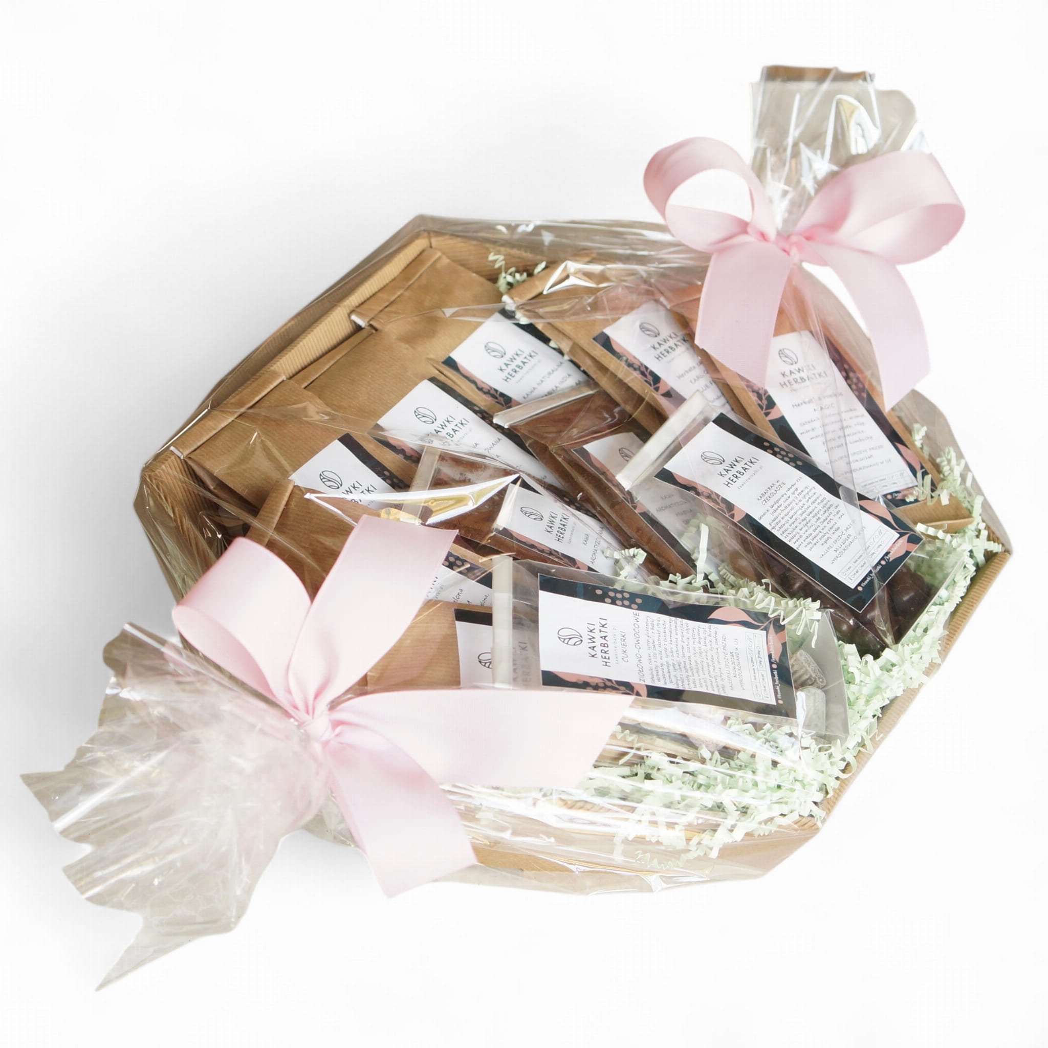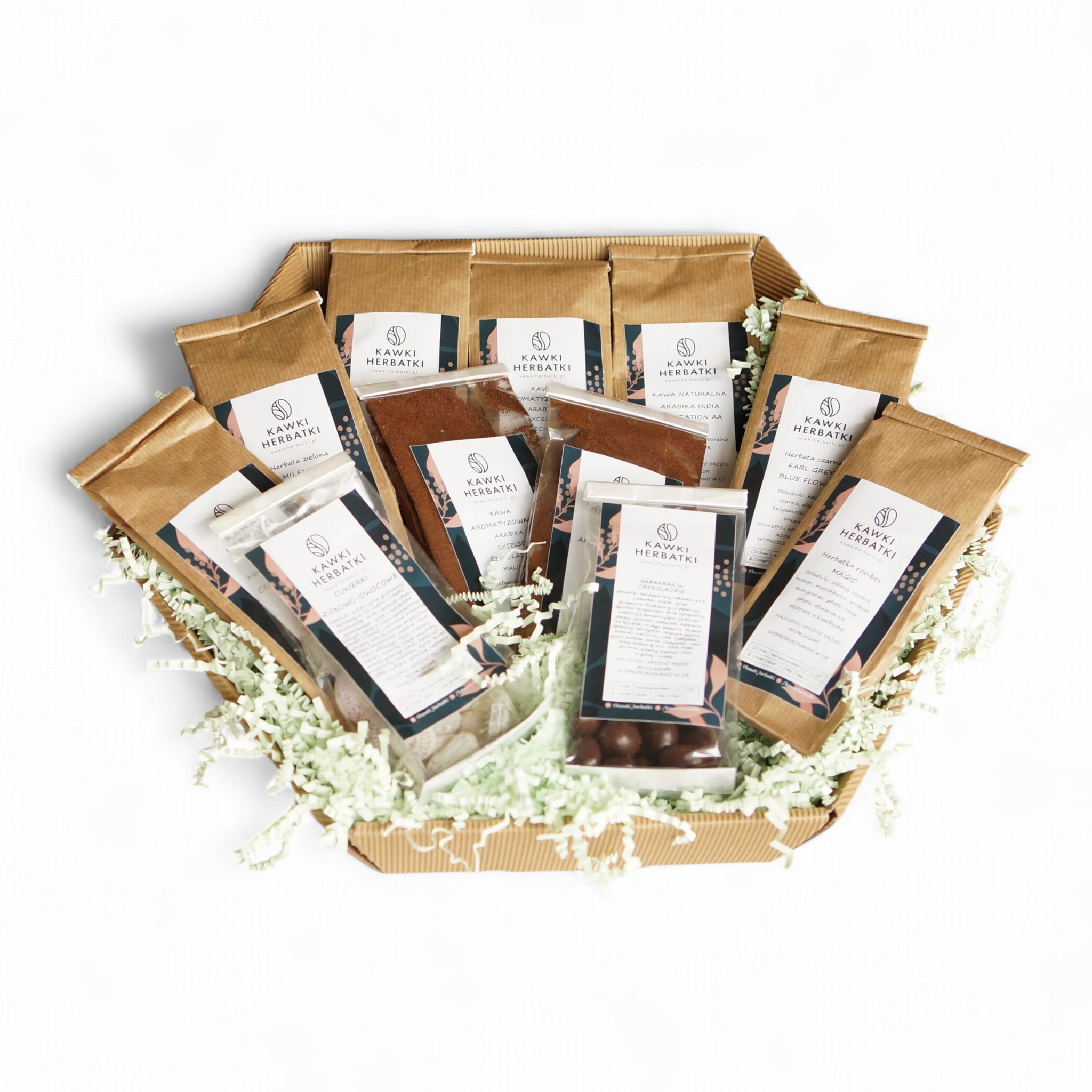 Kosz prezentowy duży: kawy, herbaty, słodycze