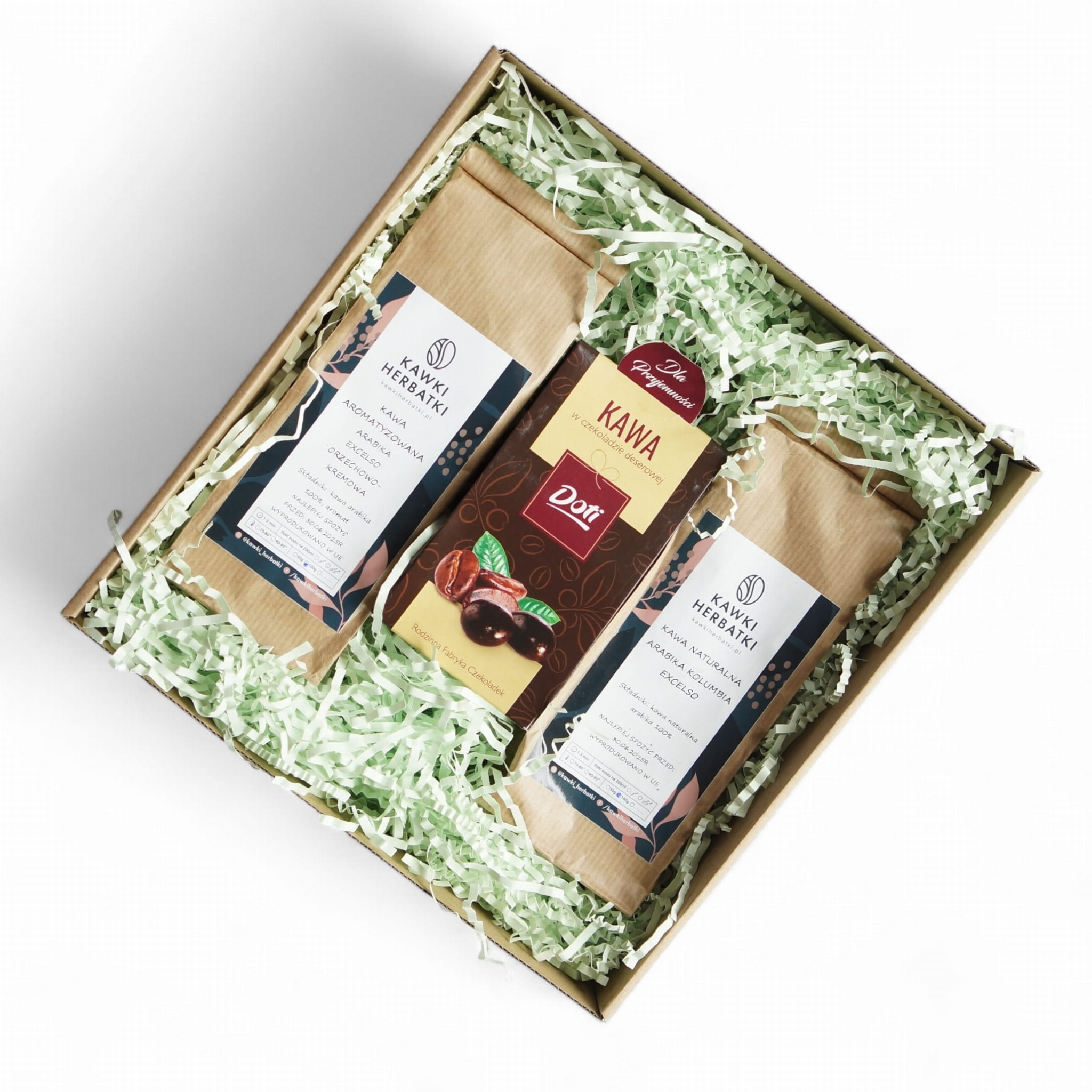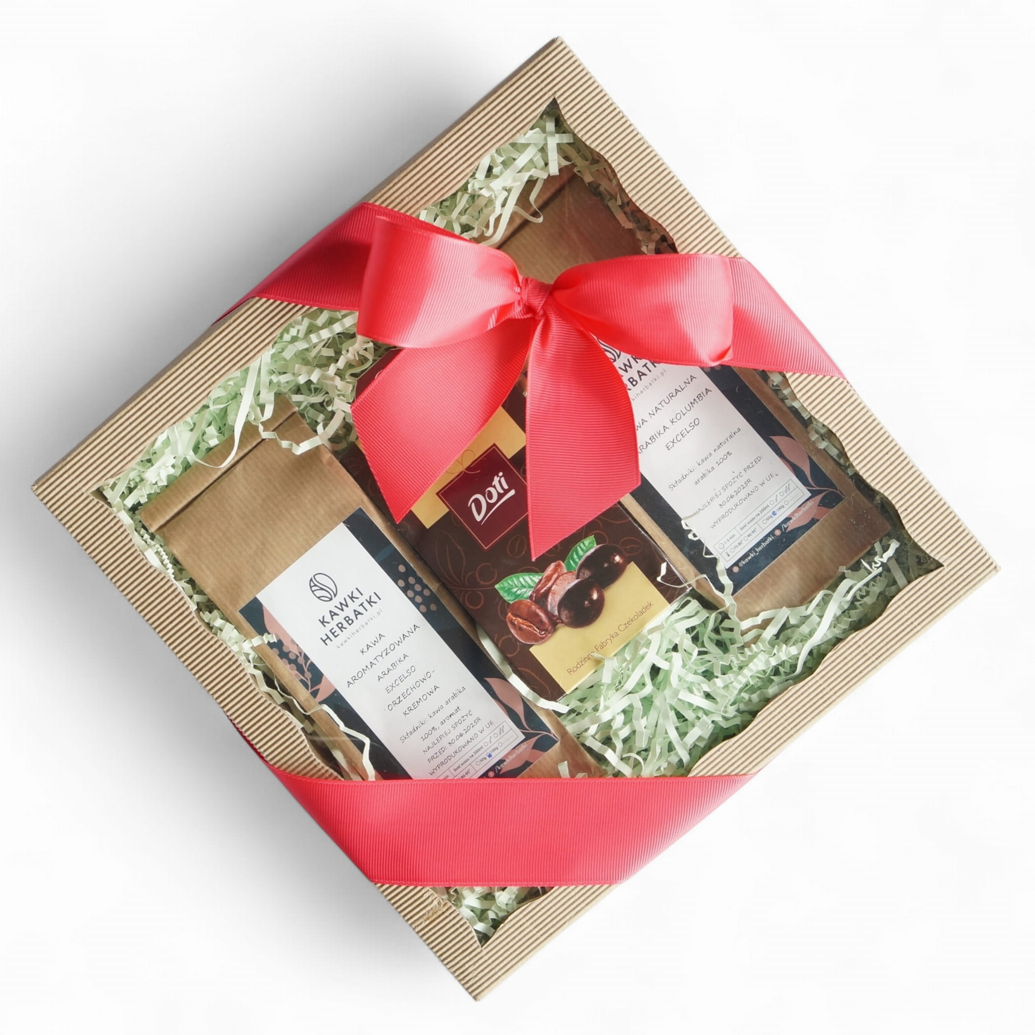 pudełko z okienkiem: kawy i czekoladki